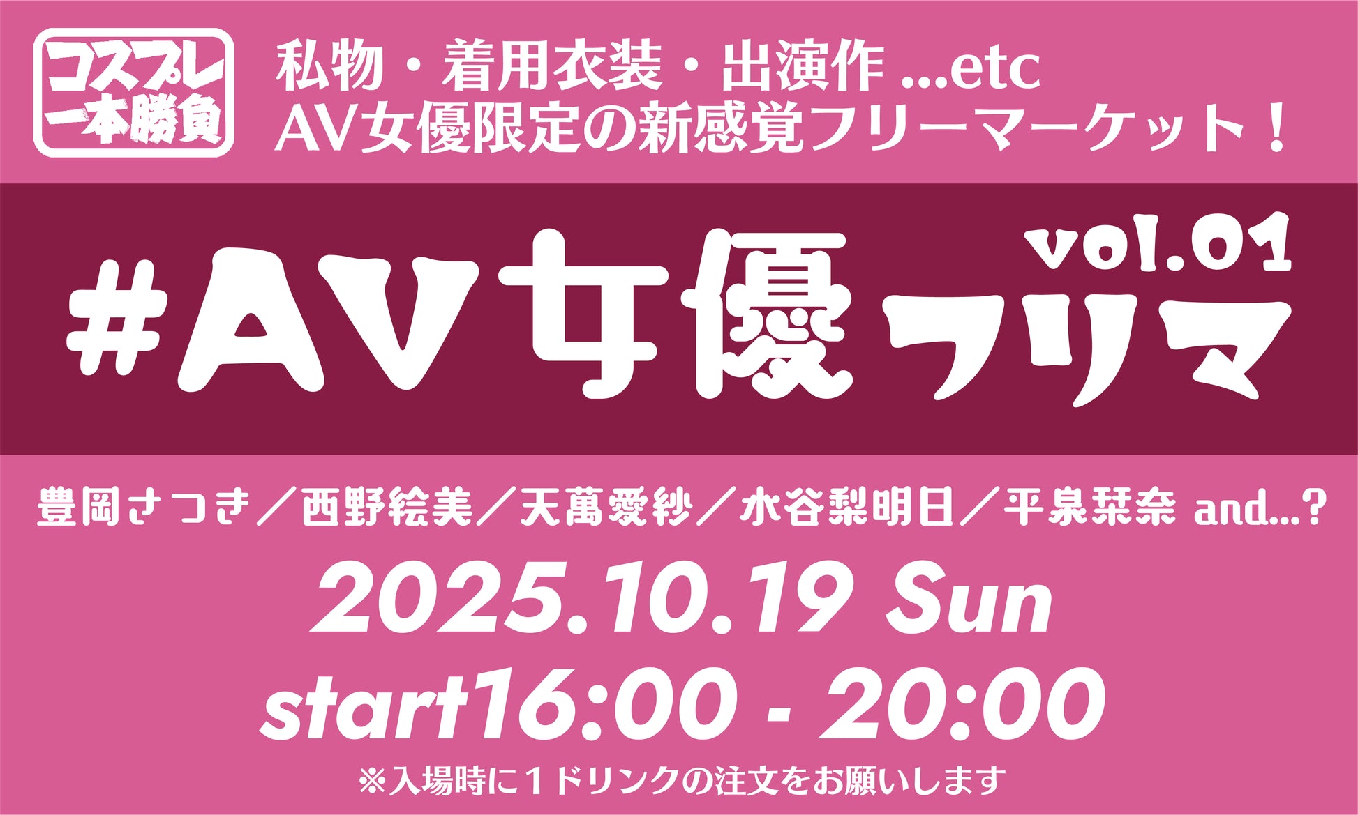 25年10月19日(日)コスプレ一本勝負presents『リアル生開催!AV女優フリマ!!!』
