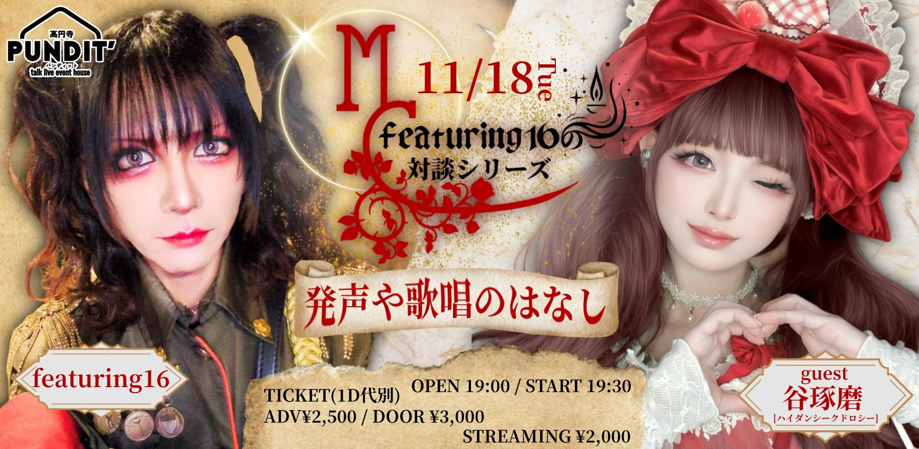 25年11月18日(火)MC:featuring16の対談シリーズ『発声や歌唱のはなし〜 ゲスト:谷琢磨(ハイダンシークドロシー)〜』